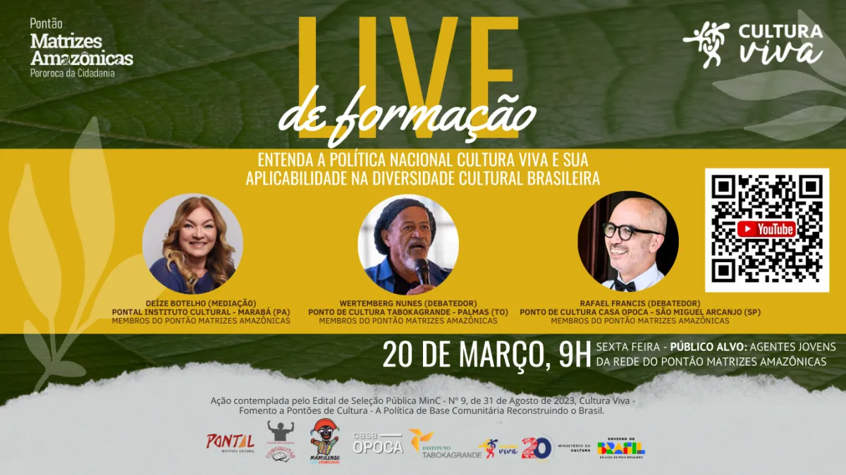 Toda essa ação só esta sendo possível pela iniciativa da Secretaria de Cidadania e Diversidade Cultural, do Ministério da Cultura que desenvolve uma ação nacional da Política Nacional de Cultura Viva, com o fomento através do edital numero 9 de agosto de 2023 para em conformidade aos objetivos da lei 13.018/2014 estabelecer Pontões de mobilização, mapeamento e formação das redes estaduais e temáticas de cultura viva por todo o Brasil.